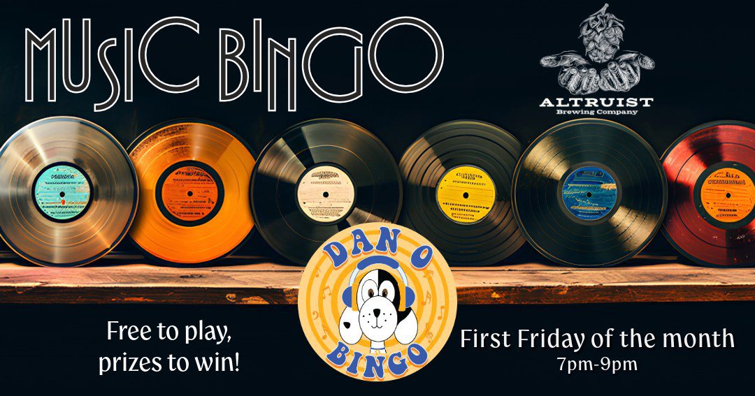 Join us the first Friday of each month for Music Bingo at 7:00 PM to 9:00 PM. Free to play, prizes to win. All are welcome Taproom Open: 4:00 PM...